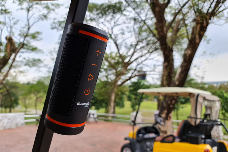 Altavoz compacto que permite escuchar tu música favorita y recibir distancias audibles en el campo, incluyendo mediciones al frente, centro y fondo del green. Su sistema magnético BITE se adhiere al carrito de golf. Batería recargable y sonido de alta calidad. Incluye acceso a más de 38,000 campos de golf en todo el mundo. $109.99. bushnellgolf.com